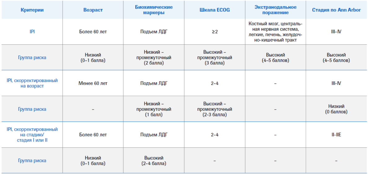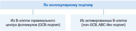 | Происхождение опухоли (молекулярный подтип) | ABC (non-GCB) подтип связан с худшим прогнозом. |