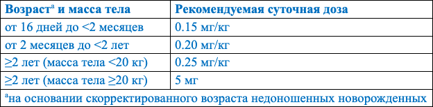 таблица 1. Режим дозирования рисдиплама в зависимости от возраста и массы тела
