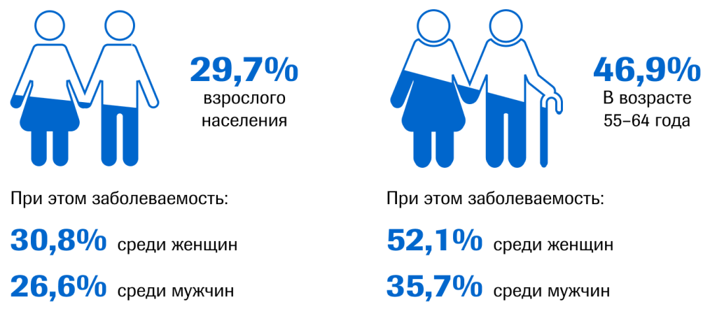 Согласно отчету «ЭССЕ-РФ», проведенному в России в 2012- 2013 годы, распространённость ожирения следующая:4